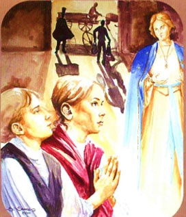 They were still kneeling before the Blessed Virgin when they heard the screech of a carriage and the hooves of a horse. An unknown person had just sent a truckload of wood for the little House of Providence.